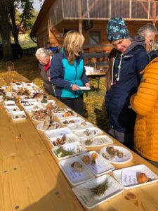 V závěru jsme určili několik druhů hub, těch které se momentálně dají v přírodě najít a které někteří účastníci přinesli: ucho Jidášovo, outkovka pestrá, kačenka česká, lesklokorka ploská, kořenovník vrstevnatý, choroš brvitý a loňská plodnice pýchavky hruškovité.